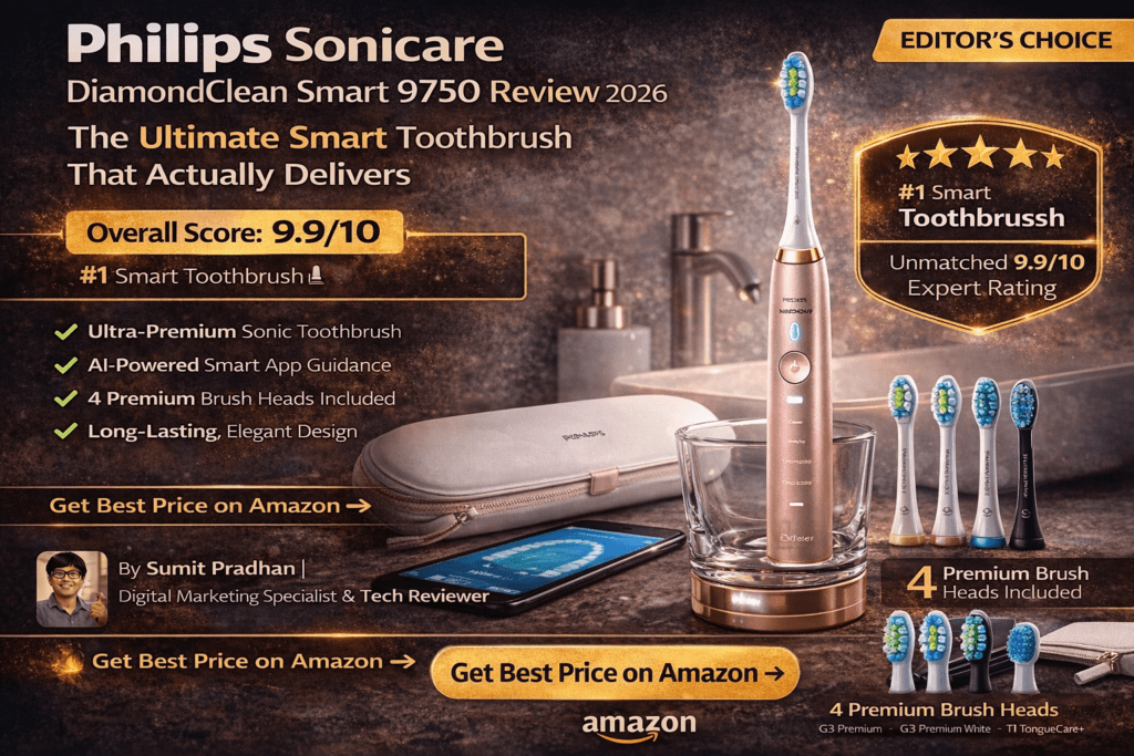 After 90 days of daily use, countless dentist visits, and comparing it to every major competitor on the market, I can confidently say this: The Philips Sonicare DiamondClean Smart 9750 is the most complete oral care system available in 2026. But is it worth the premium price tag? Let’s dive deep into what makes this smart toothbrush special—and where it falls short.